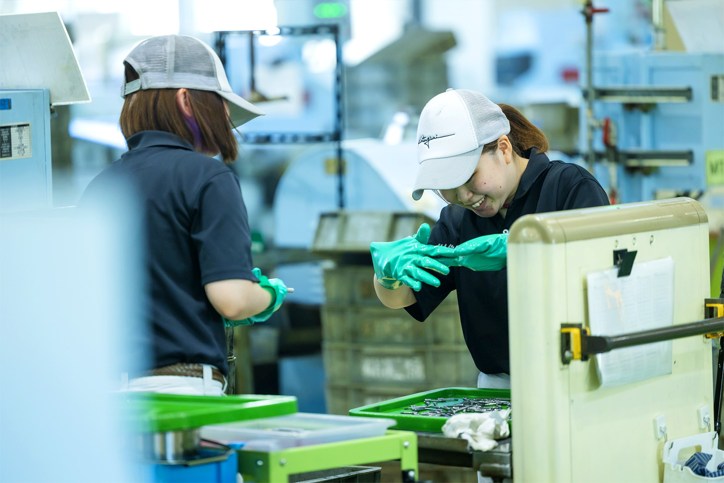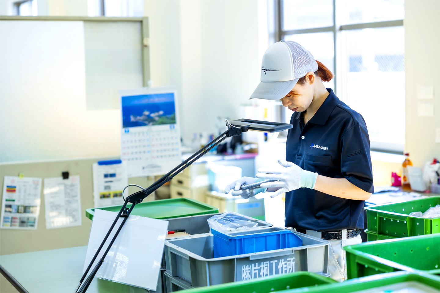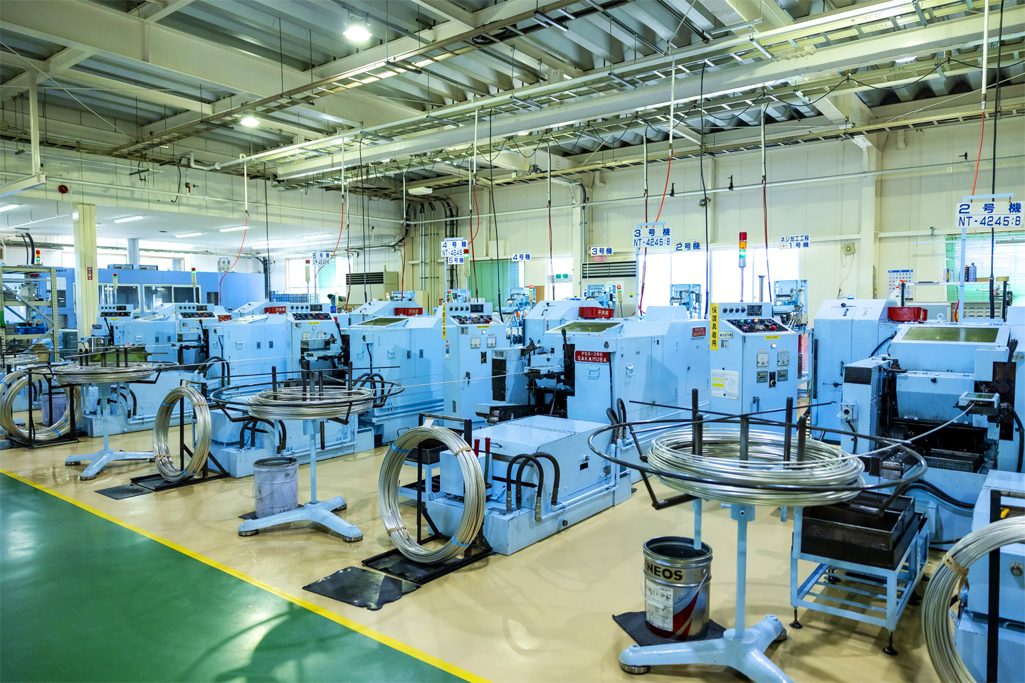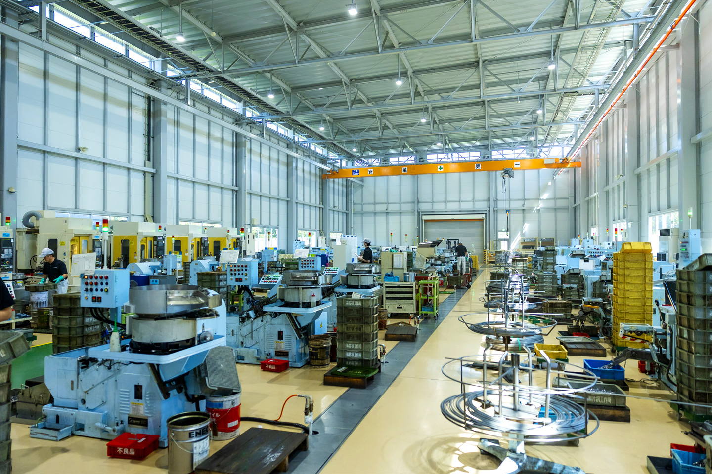 工場というと、油まみれで暗いイメージを持つ人もいるかもしれませんが、片桐工作所は、「良い環境で良い製品づくり」のため、明るくクリーンな職場環境が自慢です。エアコン完備で年中快適な環境で働けます。