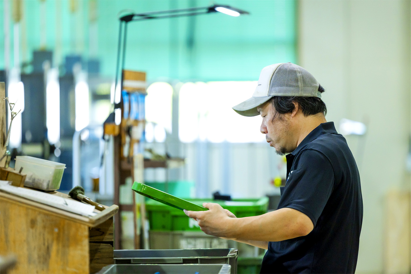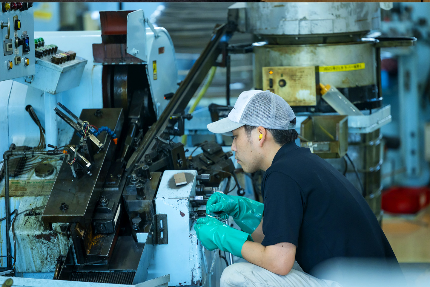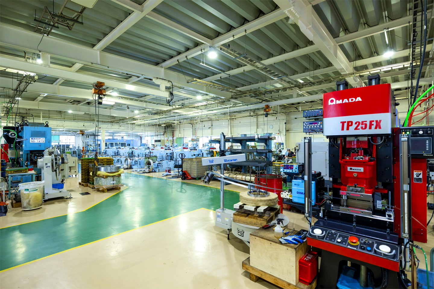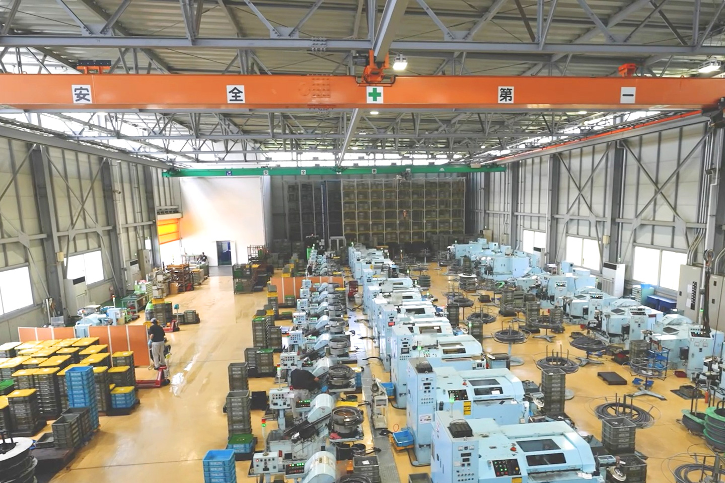 工場というと、油まみれで暗いイメージを持つ人もいるかもしれませんが、片桐工作所は、「良い環境で良い製品づくり」のため、明るくクリーンな職場環境が自慢です。エアコン完備で年中快適な環境で働けます。